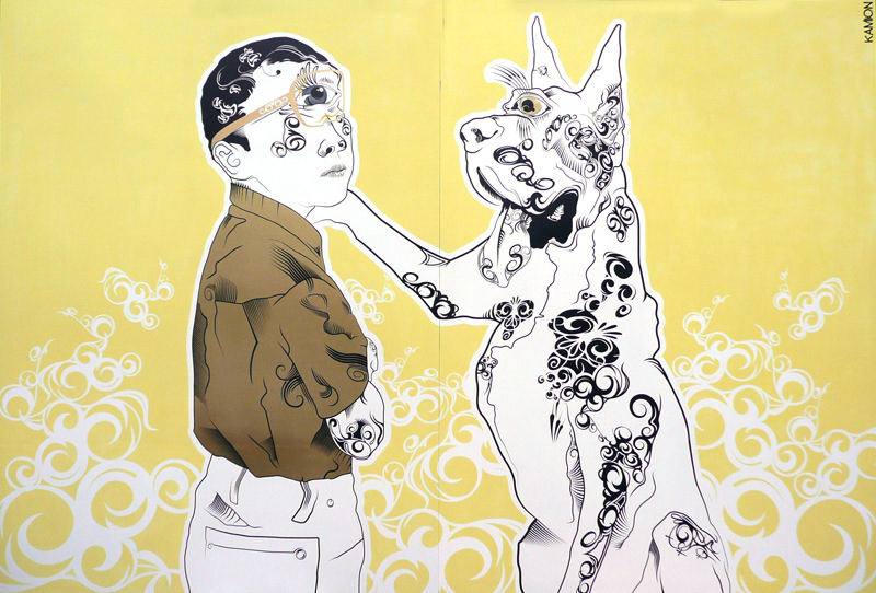 Cycboy meets cycdog, 2008 6 layer stencil on 12mm ply 2350mm x 1600mm